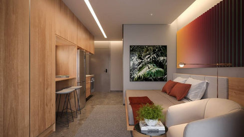 O empreendimento conta com 142 unidades, incluindo 36 studios e uma loja. Suas áreas comuns foram cuidadosamente projetadas para atender ao estilo de vida contemporâneo. A piscina na cobertura oferece uma vista panorâmica incrível do skyline da cidade, enquanto o wi-fi nas áreas comuns, os lockers e o minimercado proporcionam praticidade e comodidade aos moradores.